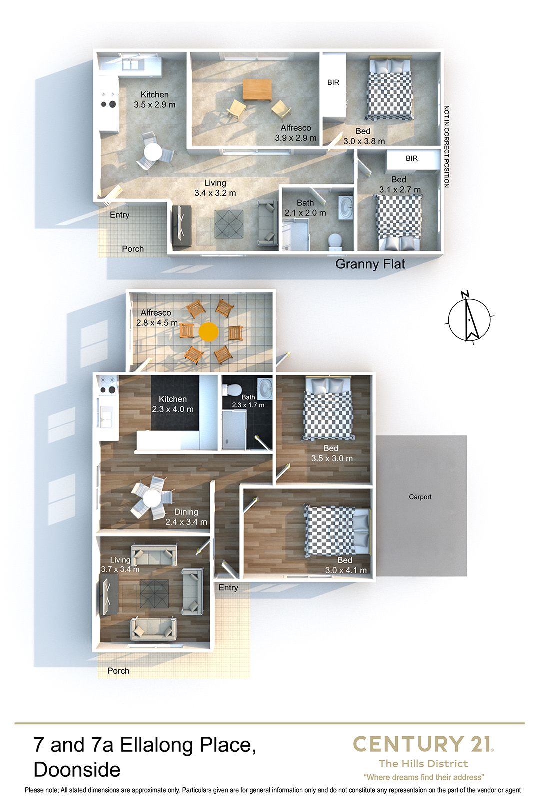 Set in a quiet cul-de-sac, 7 Ellalong Place, Doonside presents a fantastic opportunity for those looking to renovate, rebuild or invest. Positioned on a generous block, the original two-bedroom, one-bathroom home with a two-car garage offers solid bones but requires updating throughout, making it ideal for renovators or a knockdown and rebuild (STCA). Adding further appeal is a near-new two-bedroom granny flat featuring mirrored built-ins, a separate lounge and kitchen, modern kitchen with dishwasher, combined bathroom and laundry, air conditioning and security cameras. Complete with a private, low-maintenance yard, spacious alfresco and large garden shed, this property offers excellent potential for dual income or extended family living, all conveniently located close to schools, shops, parks and transport.